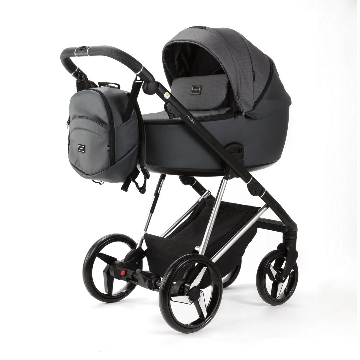 Детская коляска Adamex Blanc Special Edition 2 в 1 BL-PS595/С (Т.СЕРЫЙ+ Т.СЕР.КОЖА+ХРОМ РАМА)