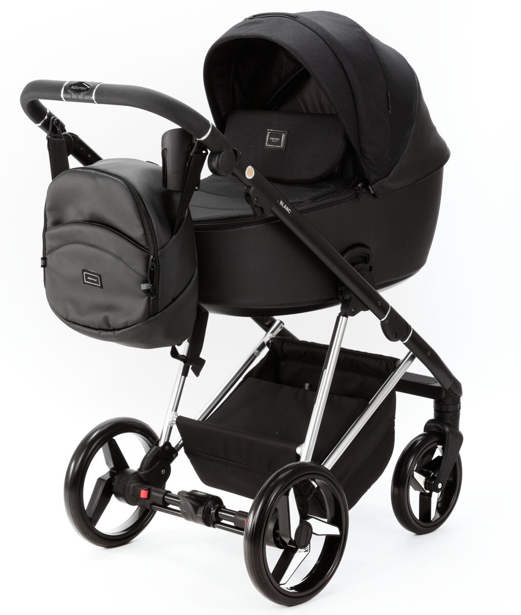 Детская коляска Adamex Blanc Special Edition 3 в 1 BL-PS700 (ЧЁРН.ТК+ЧЁРН.КОЖА+ХРОМ РАМА)