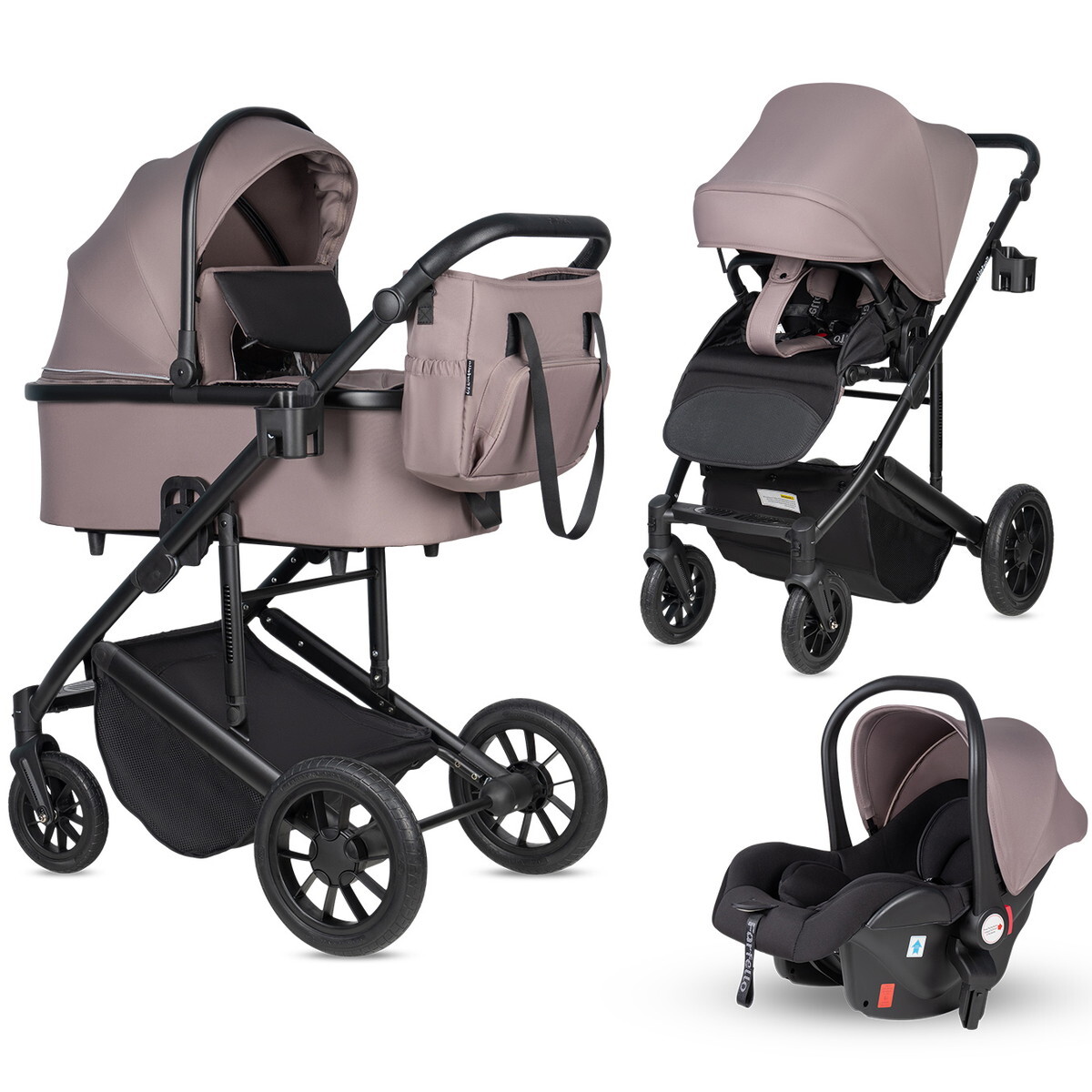 Автолюлька (0-13 кг) имеет трехточечные ремни безопасности с мягкими накладками. Внутри автолюльки находятся съемные мягкие вкладыши. Устанавливается блок на раму коляски. В машине крепится штатными ремнями против хода движения. Автолюлька комплектуется чехлом на ножки