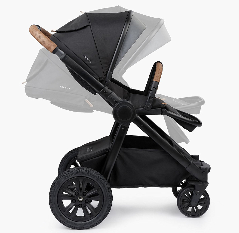 Прогулочный блок оснащён капюшоном до бампера. Бампер с разделителем для ног и пятиточечные ремни с мягкими накладками надёжно фиксируют малыша в коляске. Угол наклона блока, положение спинки и подножки можно отрегулировать. Прогулочный блок устанавливается лицом к родителям или по ходу движения.