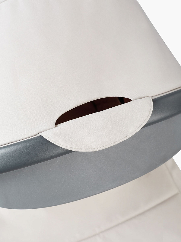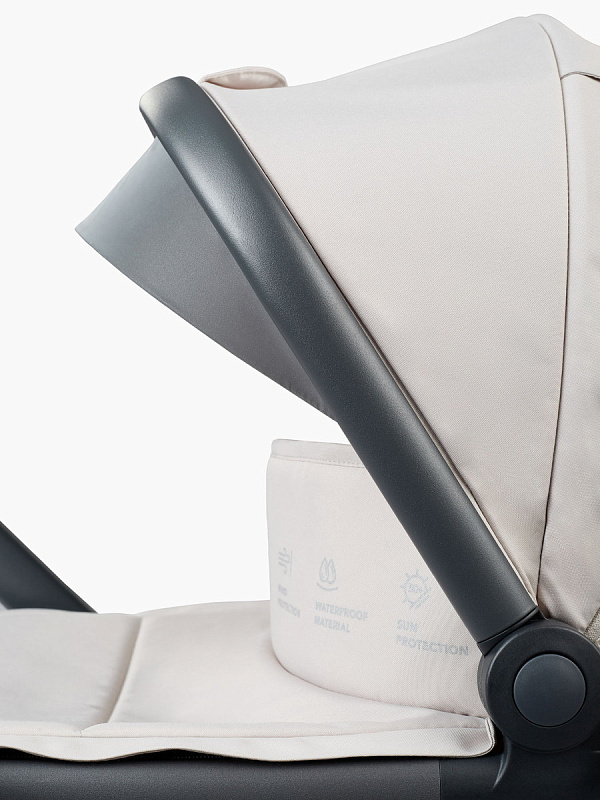 люлька оснащена удобной ручкой для переноскиБольшой капюшон защитит от солнца, а смотровое окошко поможет наблюдать за ребёнком. Теплые бортики