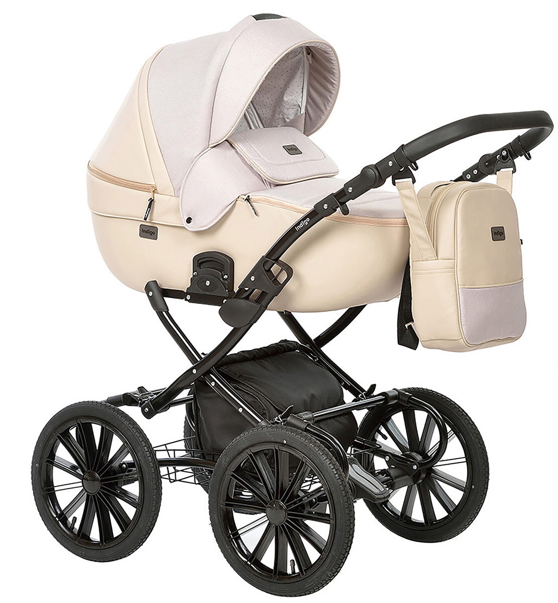 Детская коляска Indigo Porto Classic 14 2 в 1 Po 03 бежевая кожа+бежевый лен