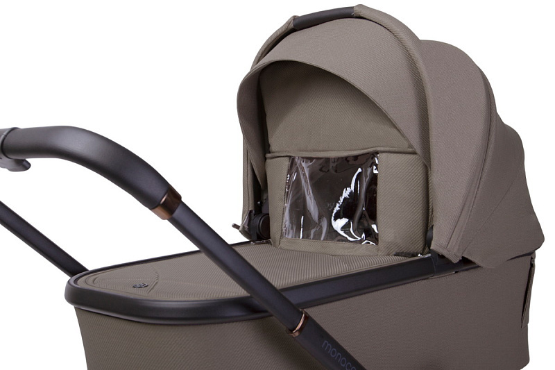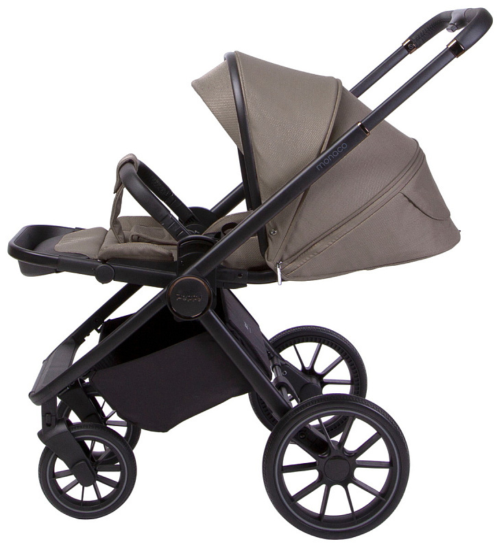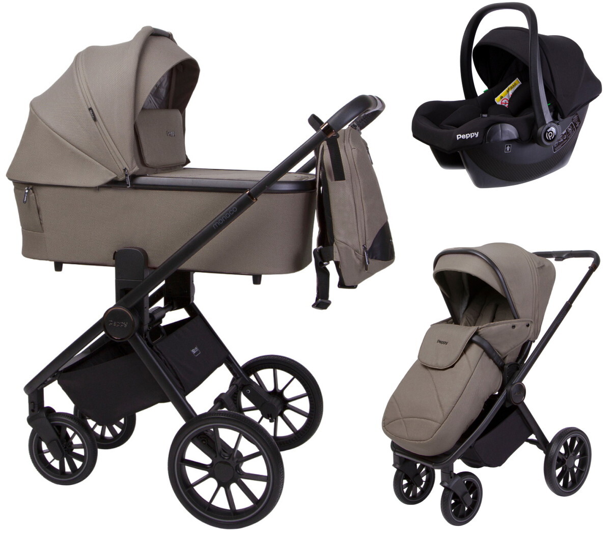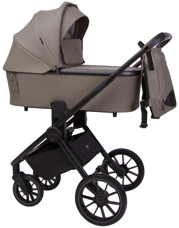 Детская коляска Peppy Monaco 3 в 1 с автокреслом Rise Sandstone (песочный), рама черная