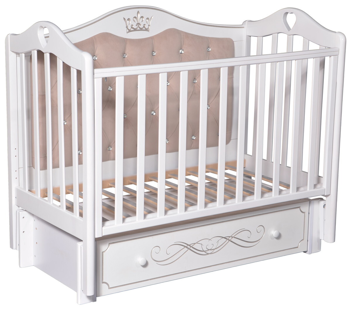 Детская кроватка Антел Karolina 555 мягкая спинка, универсальный маятник с ящиком белый
