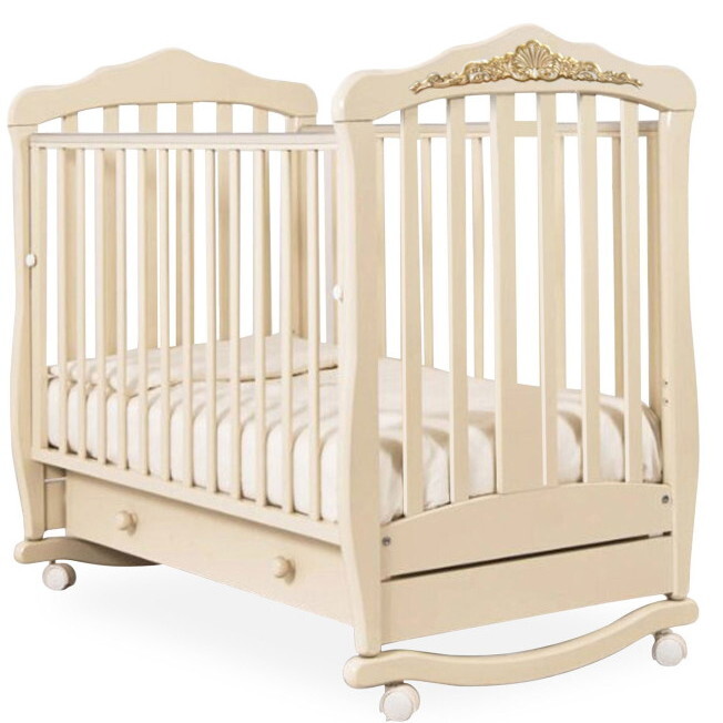 Детская кроватка Гандылян Доминик Люкс колесо-качалка с ящиком слоновая кость