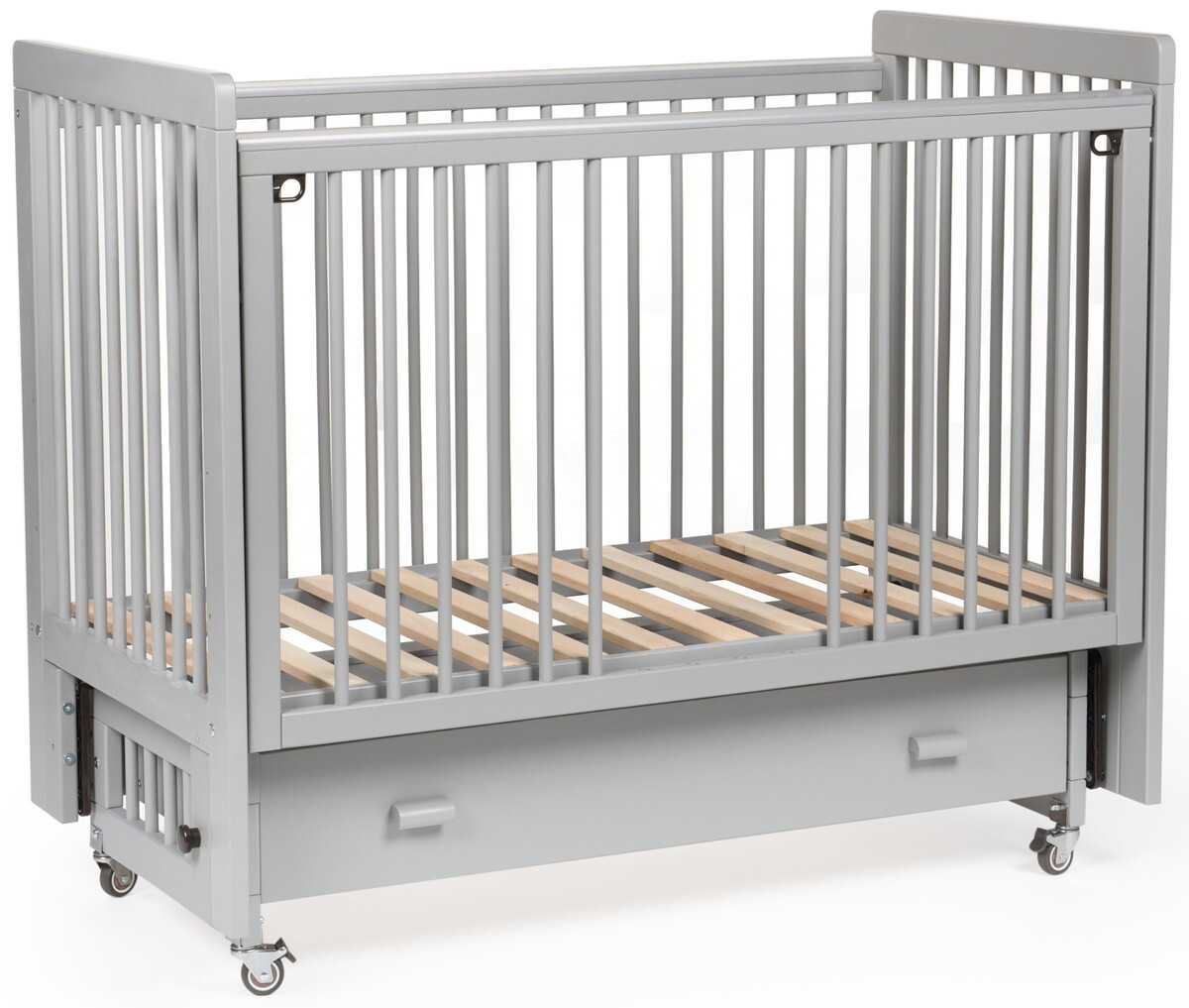 Детская кроватка Tutis Nature с маятником и ящиком серый