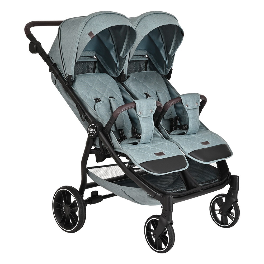 Просторные мягкие сидения шириной 32 см, глубиной 21 см, высота спинки 43 смСпинки регулируются по высоте в любом положении, независимо друг от друга.Удлиненный капюшон из трех частей со скрытой секцией на молнииКапюшон дополнен козырьком на молнииЗадняя стенка капюшона полностью открывается для вентиляции, дополнена карманом для мелочей на молнииОтдельные защитные бамперы для каждого ребенка, изготовленные из экокожи, отстегиваются с обеих сторонПодставка для ног со вставкой из экокожи, регулируемая по высоте в двух положениях