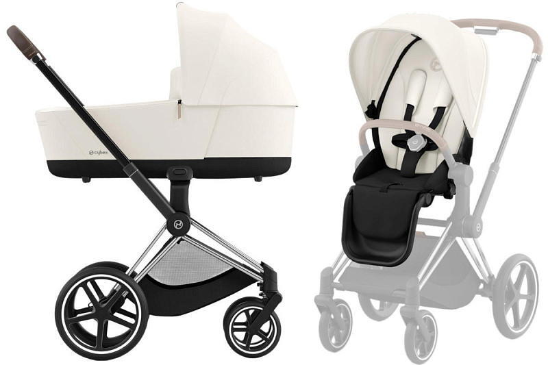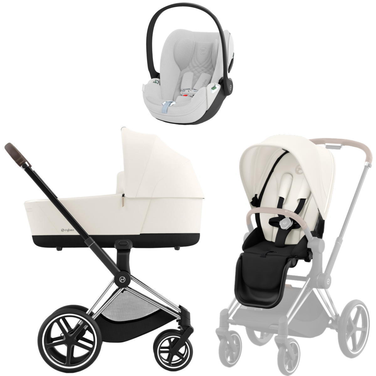 Коляска 3 в 1 Cybex Priam IV Chrome Brown complete и автокресло Cloud T i-Size Platinum White Plus Off White