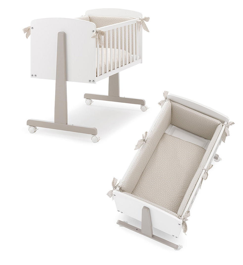 Колыбель Erbesi Ninna и комплект постельного белья Cuoricine Маленькие сердца белый/серо-песочный