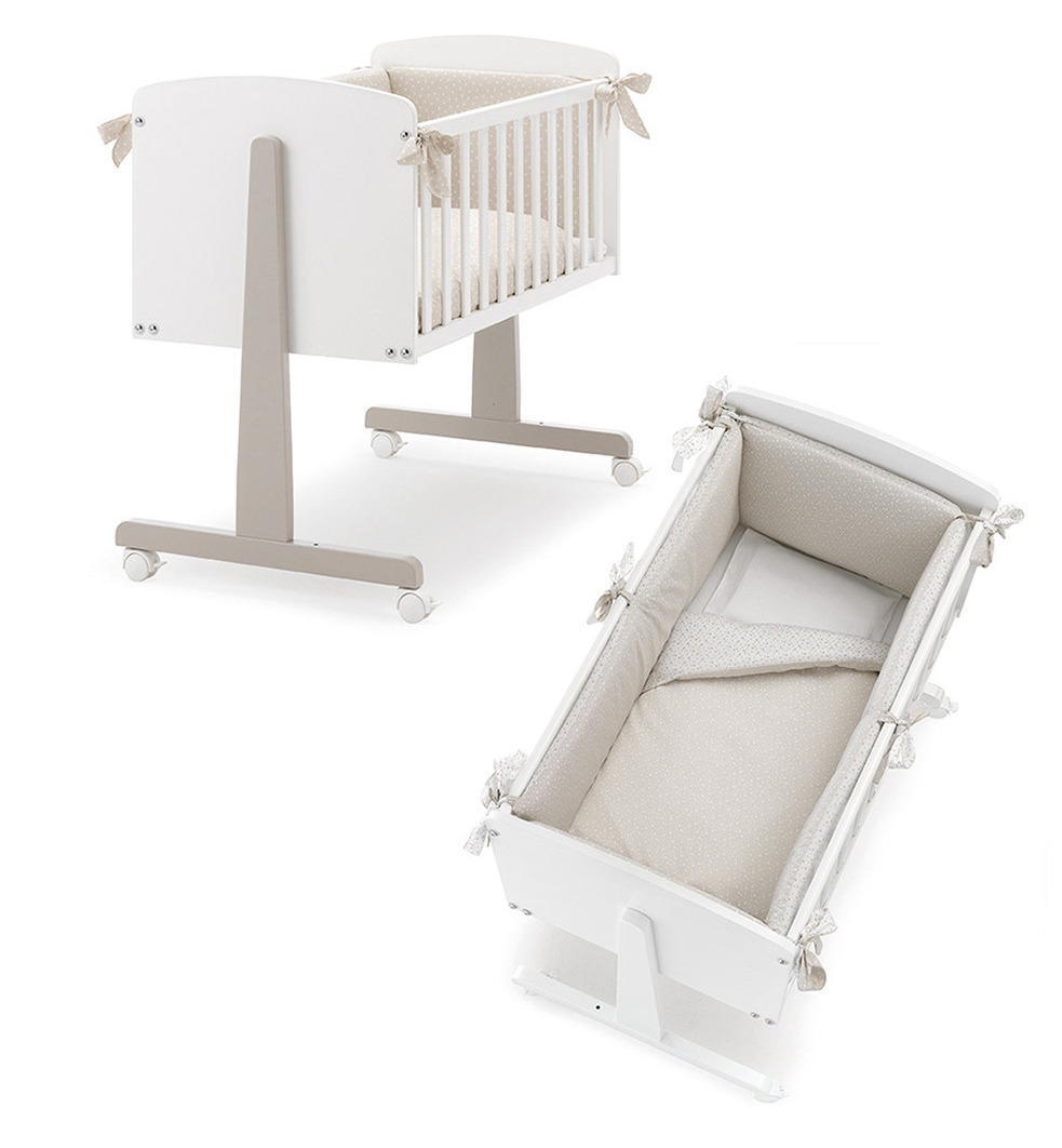 Колыбель Erbesi Ninna и комплект постельного белья Stelline Звездочки белый/серо-песочный