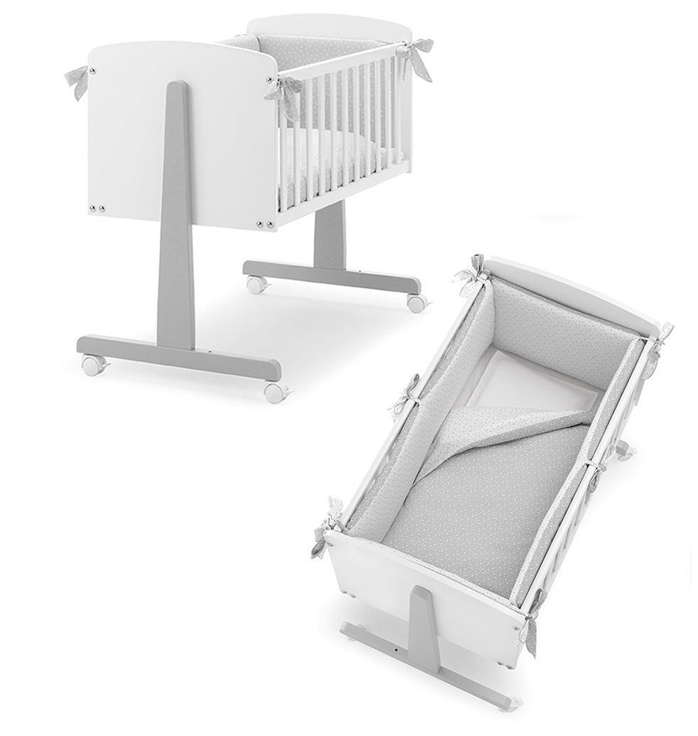 Колыбель Erbesi Ninna и комплект постельного белья Stelline Звездочки белый/серый