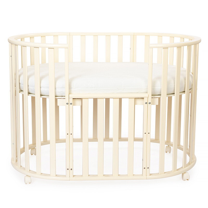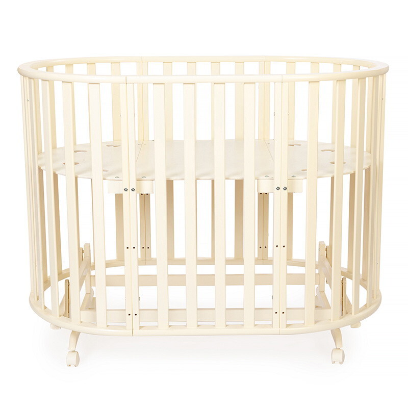 Кроватка-трансформер овальная Vikalex Лоди маятник на колёсах белый