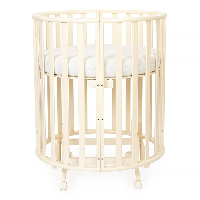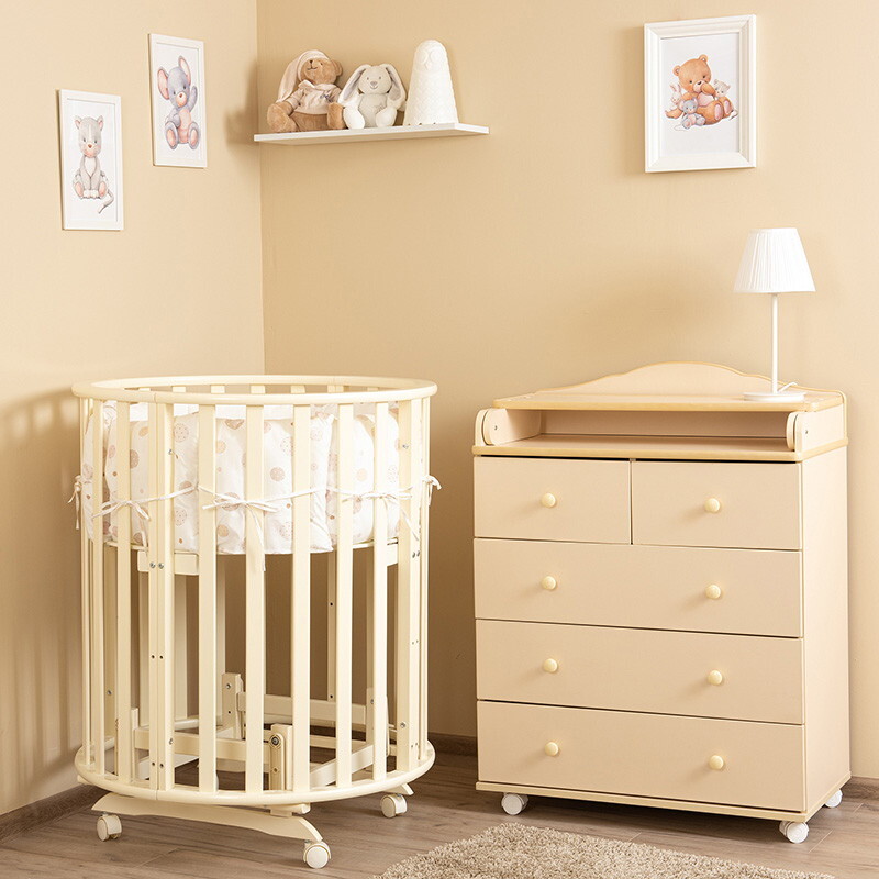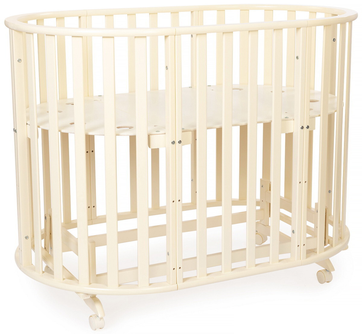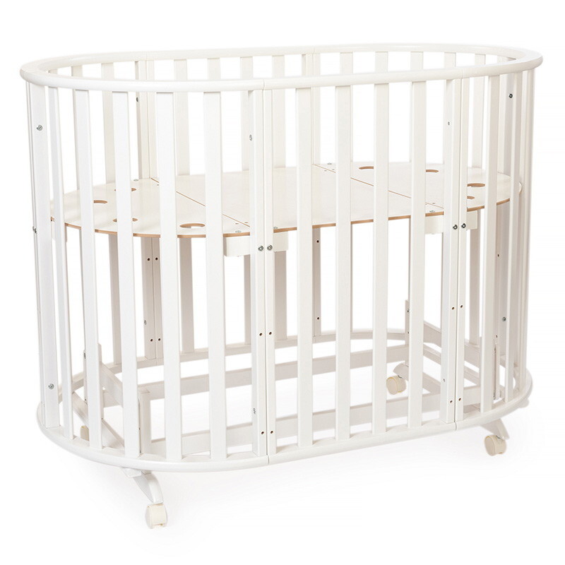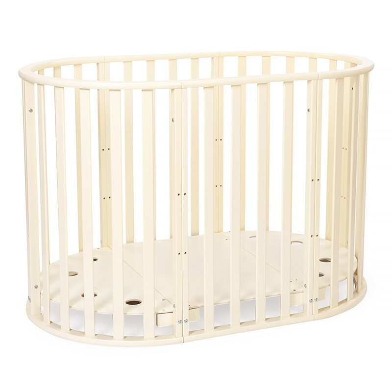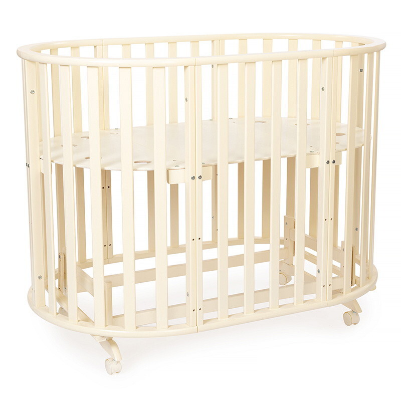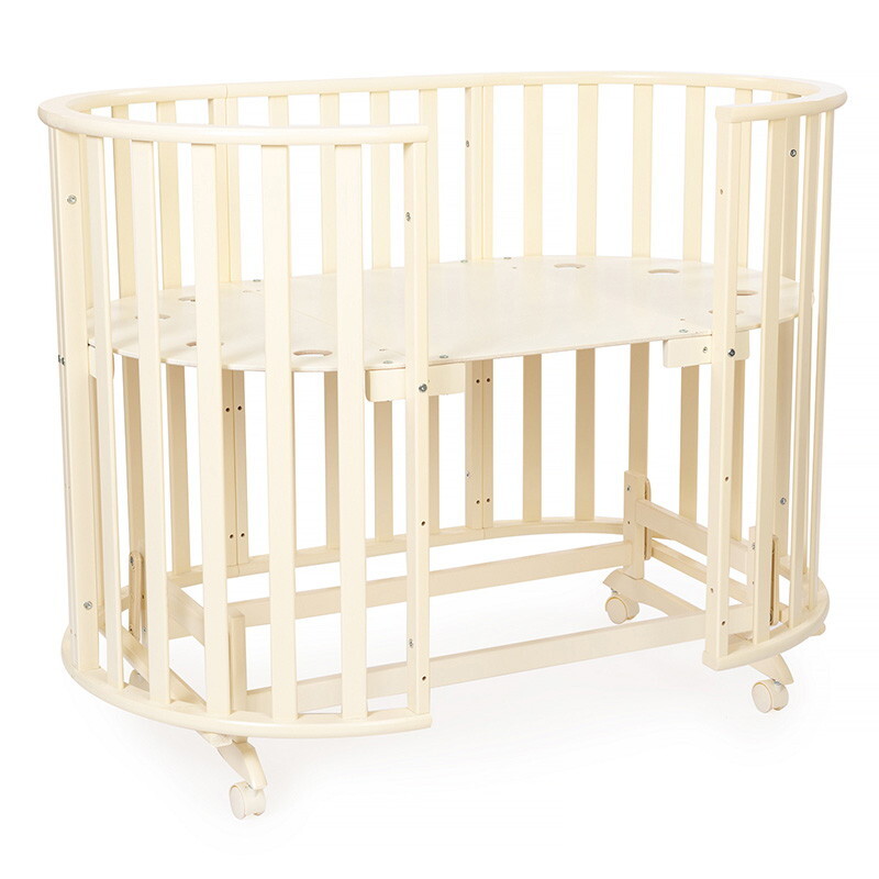 Кроватка-трансформер овальная Vikalex Лоди маятник на колёсах слоновая кость